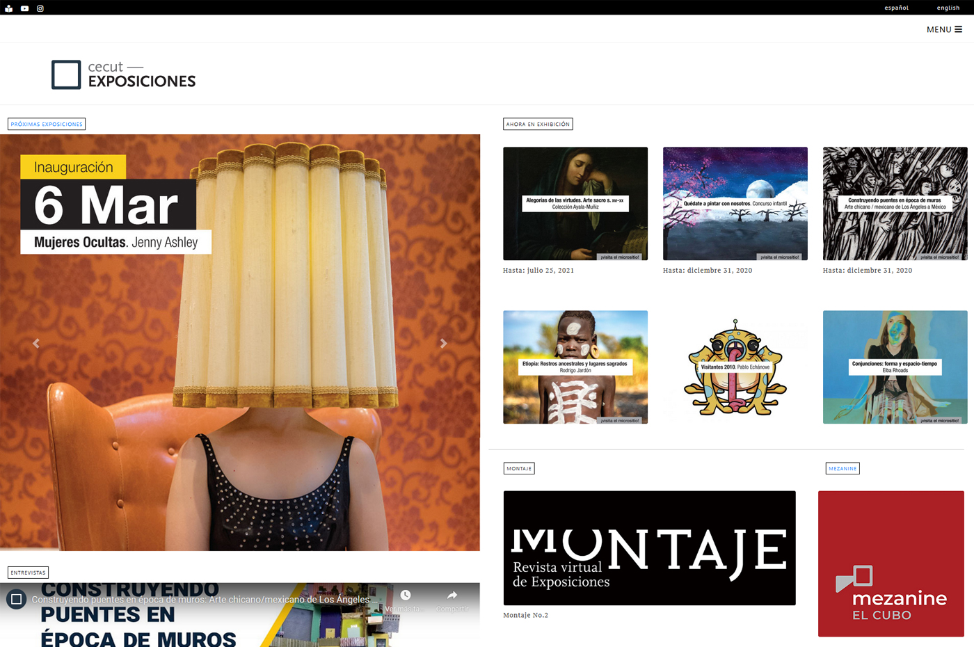 Micrositio de apoyo a una exposición física, enfocado en textos adicionales generados por Sinuhé Guevara.